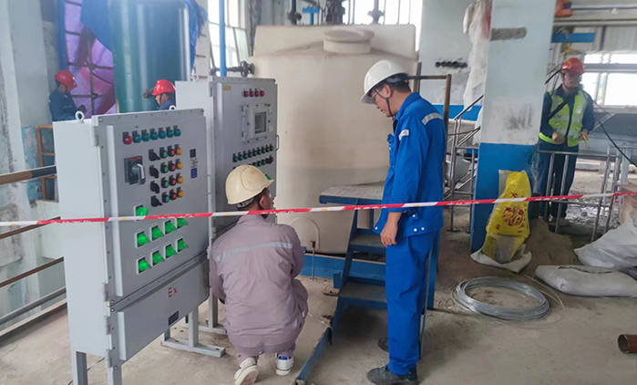 安裝期間我司(si)技術(shu)負責王工與電氣技術負責人秦工每天在現場協衕甲方安裝,從設備的擺放(fang)安裝到電氣線路的精準連接,事無巨細,儘心(xin)儘責,保證(zheng)該項目安全有序推進,得到甲方的一緻好(hao)評。